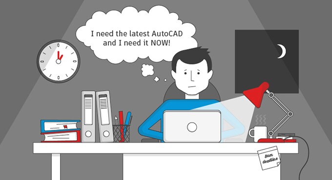 Dan’s working late to meet a deadline. He needs the latest version of AutoCAD, and he needs it NOW.